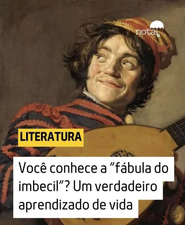 “Dizem que, numa pequena cidade, um grupo de pessoas se divertia com o "imbecil" local, um pobre coitado, de "pouca inteligência", que vivia fazendo pequenas tarefas e pedindo esmolas. Todos os dias, alguns homens chamavam o "estúpido" para o bar...